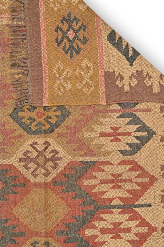 Las alfombras kilim étnicas están elaboradas con fibras naturales de primera calidad, como lana, algodón y yute, que garantizan durabilidad y suavidad. Sus principales ventajas son: