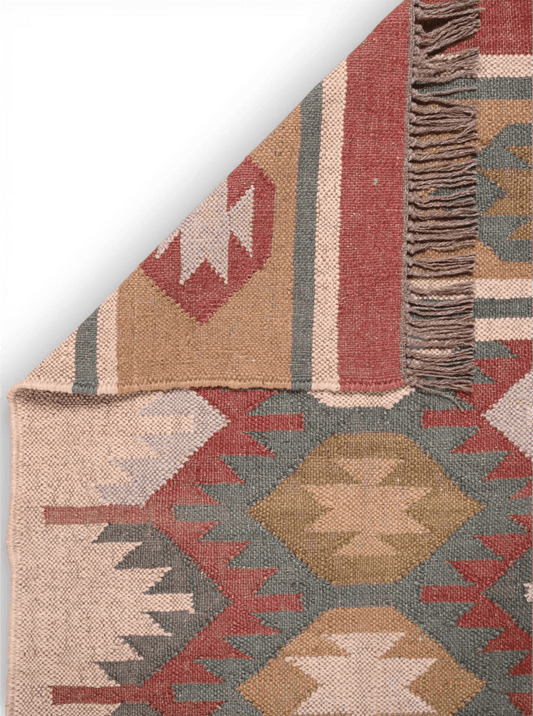 El rojo en los kilim no es solo un color: es símbolo de fuerza, protección y pasión. En muchas culturas tradicionales, el rojo se asocia con la energía vital, la tierra y el hogar. Por eso, elegir una alfombra kilim roja no es solo una decisión estética, sino también emocional.
