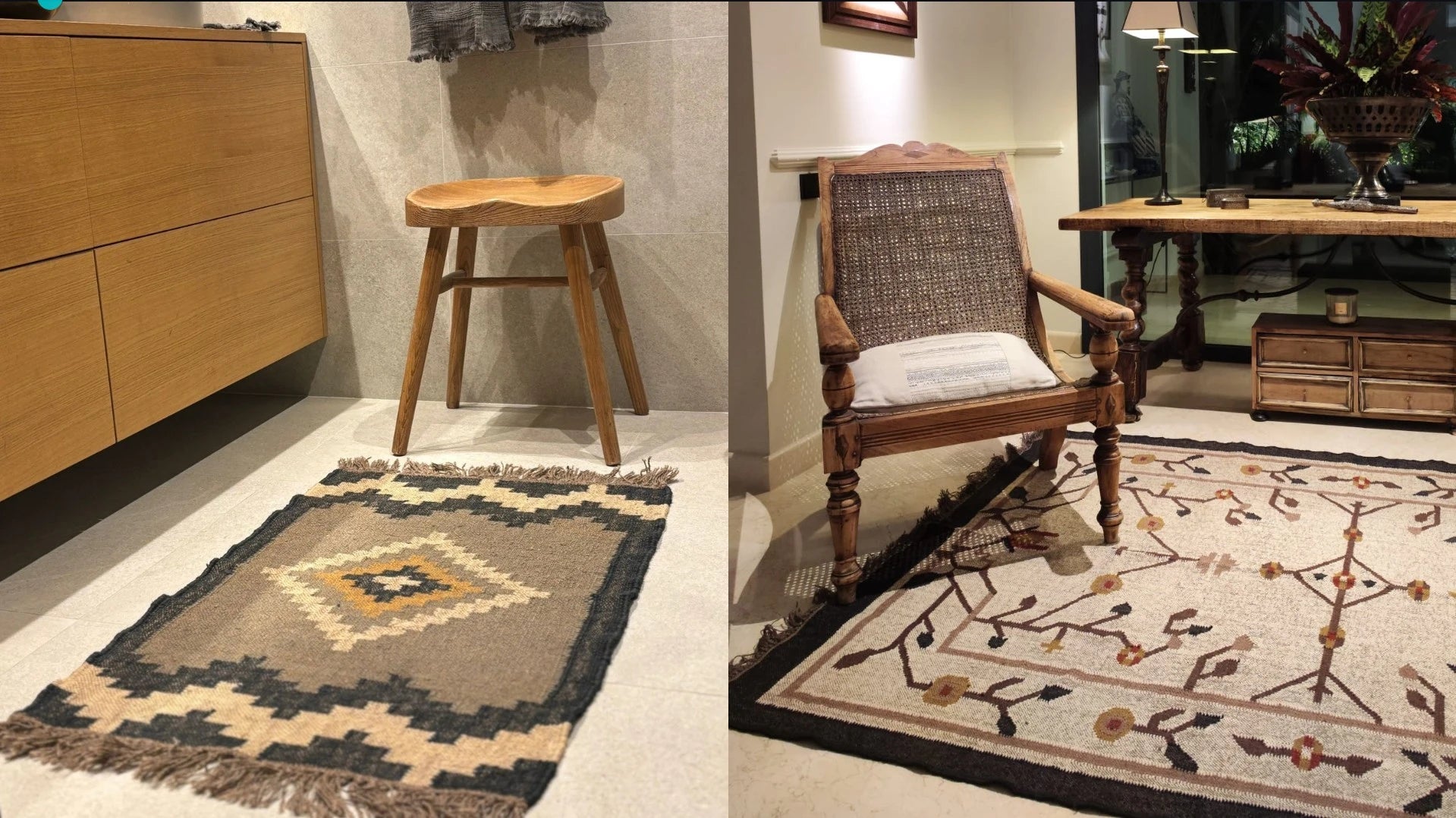 - Artesanía trazable: fabricadas en talleres de Rajasthan con lana y yute de calidad.
