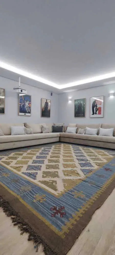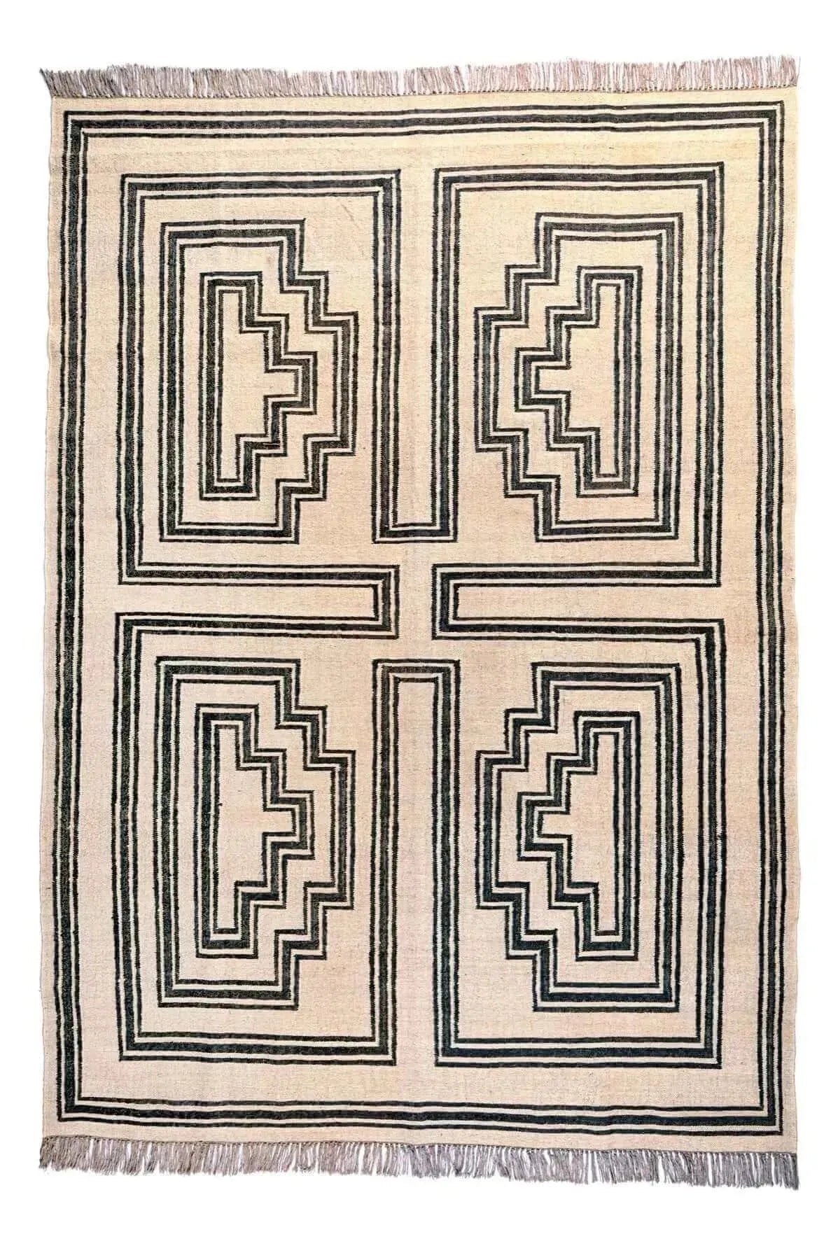 • alfombras kilim tejidas a mano, en telares verticales en fibras naturales de yute y lana.