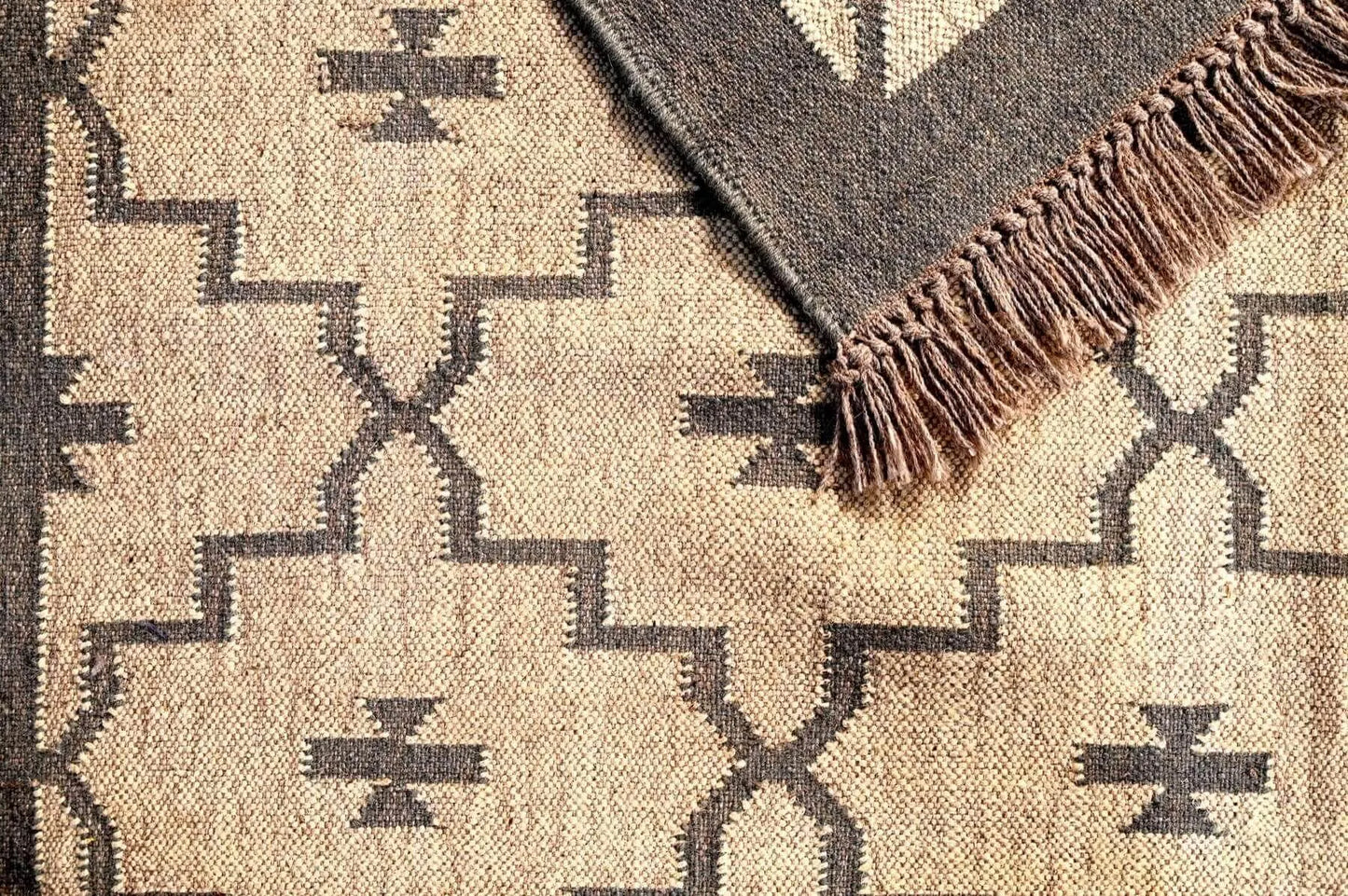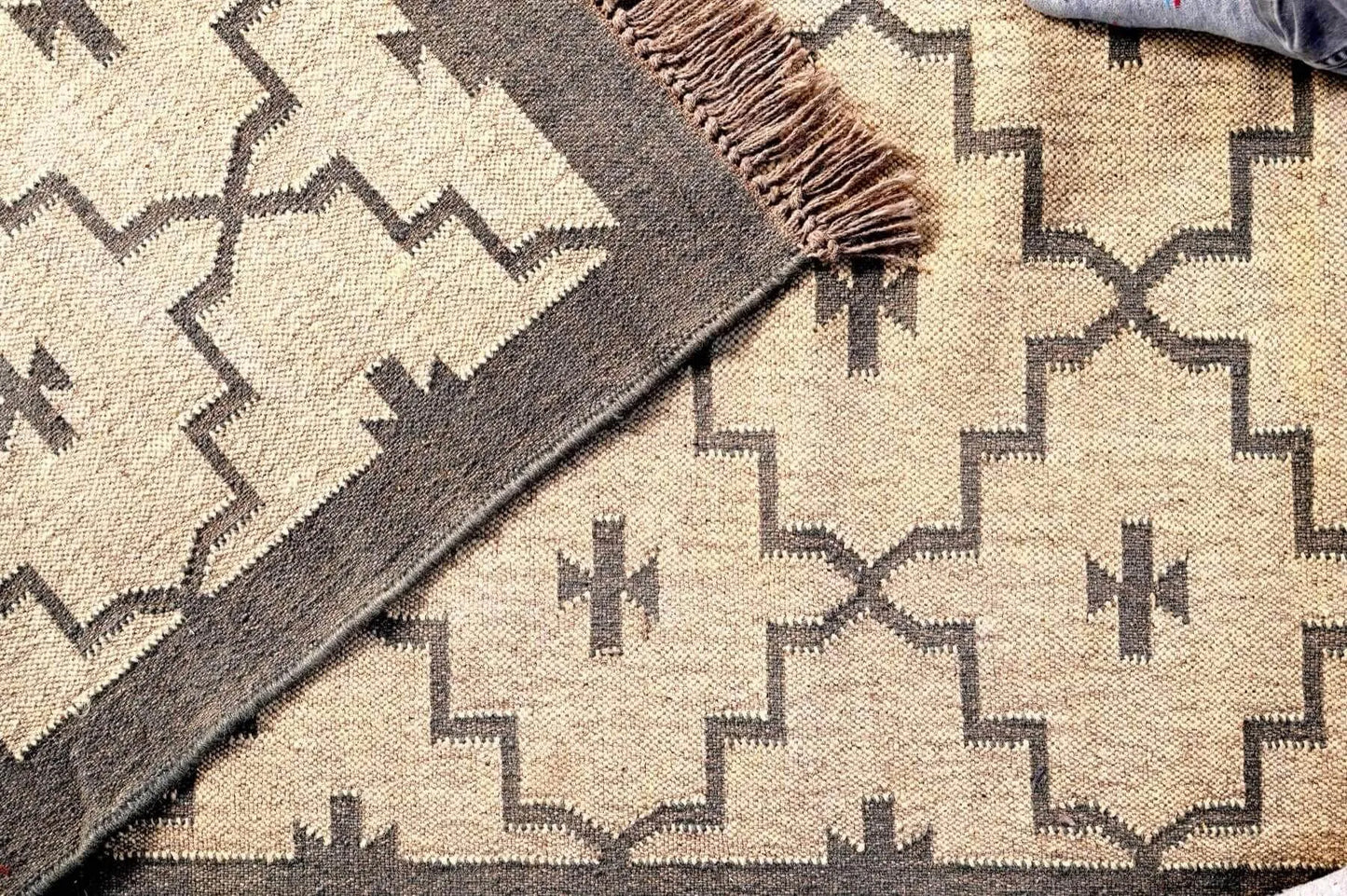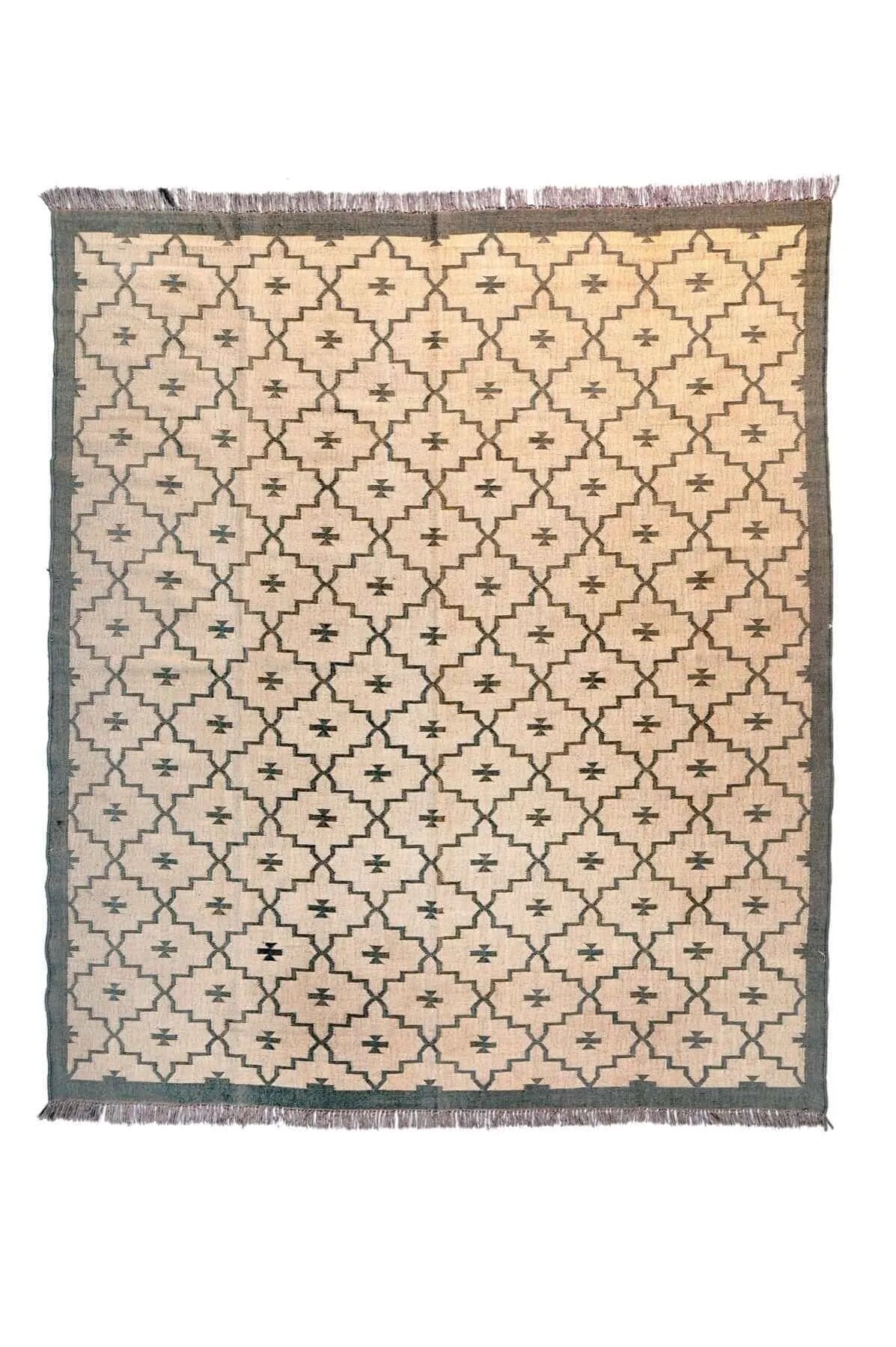 Nuestros Kilims están tejidos con fibras naturales de yute y lana, en un proceso artesanal que pasa por ocho manos y ocho etapas.