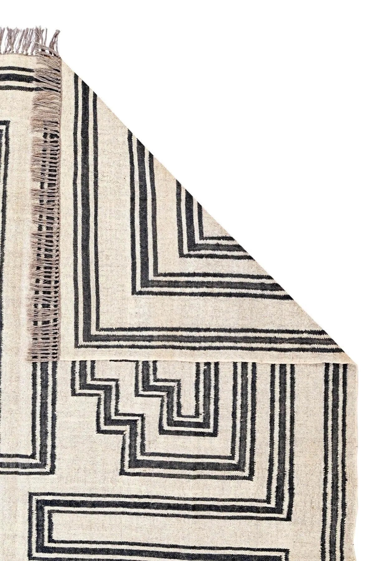 Nuestros Kilims están tejidos con fibras naturales de yute y lana, en un proceso artesanal que pasa por ocho manos y ocho etapas.